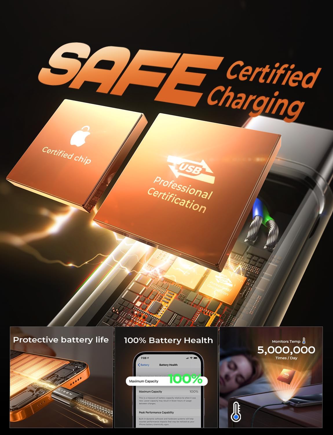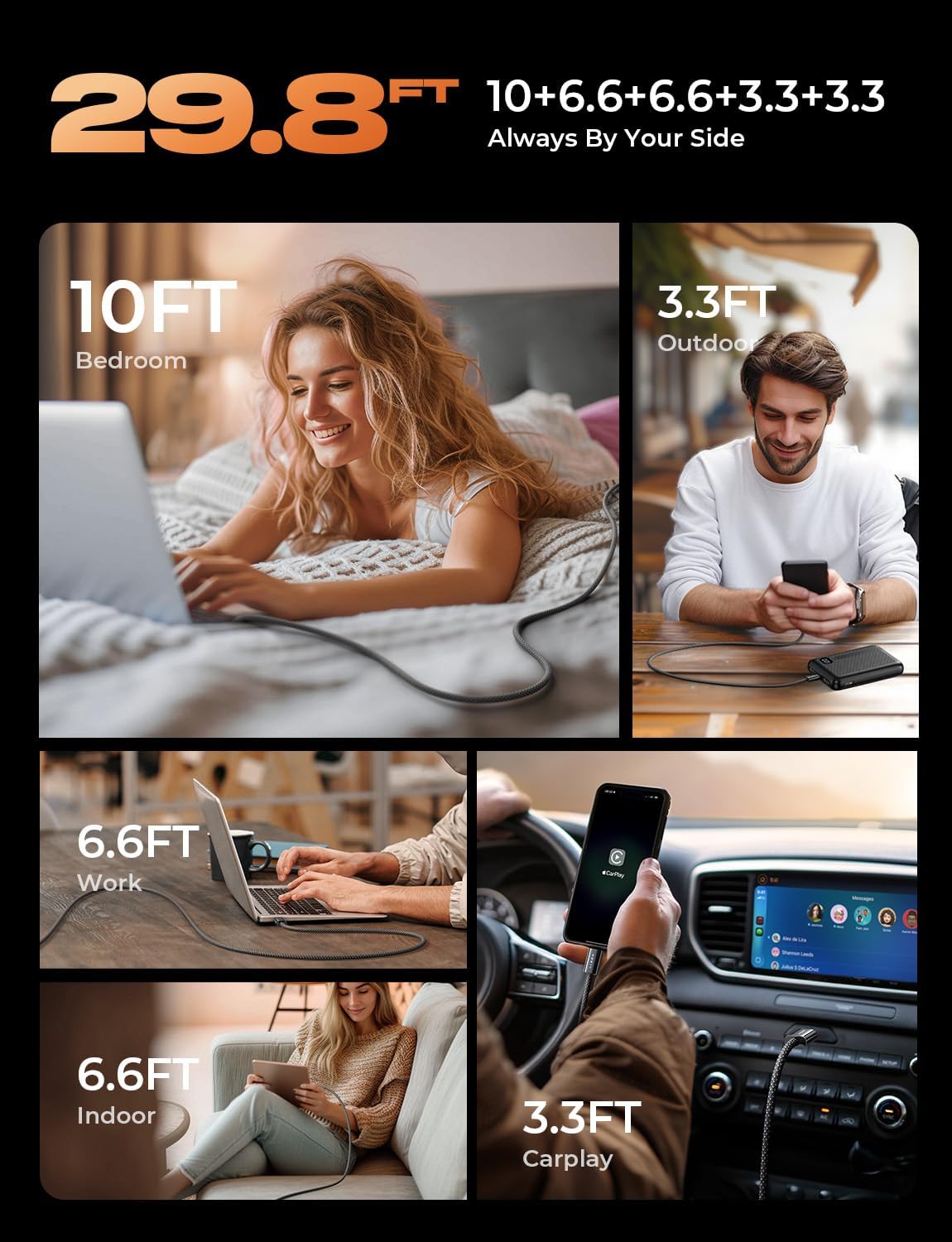 • 【Right for ALL Your Devices】This is the USB-C to USB-C cable Not the USB-C to USB-A cable, iPhone 17 Pro Max fast charger Compatible with virtually all USB-C devices including phones, tablets, and laptops. Such as Samsung Galaxy S25/S24/S23/S22/S21+/S21/S20/ S20+/ S20 Ultra/ Note 10, MacBook Air/Pro 13”, iPad Mini 6, iPad Pro 2021/2020/2018, iPad Air 2020 and more.This product supports bulk purchasing, making it ideal for businesses and large orders.