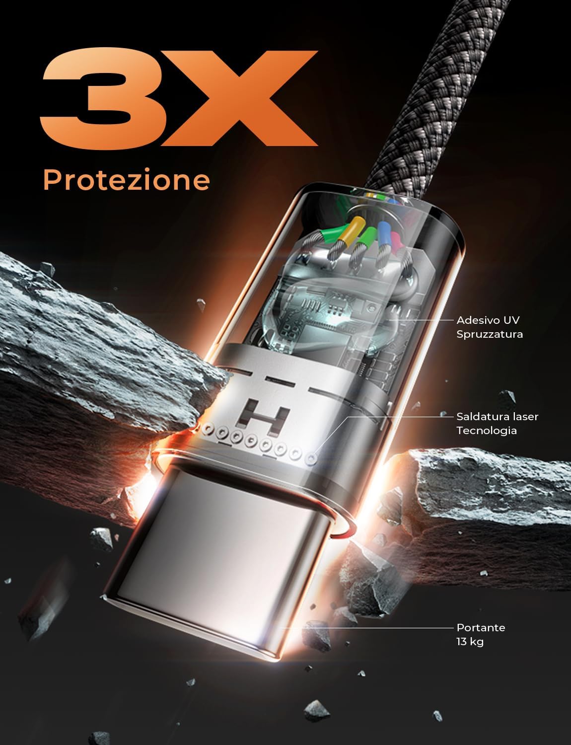 • 【Triple Protection USB C Port】USB to USB C Cable has electronic safety certifications that comply with appropriate standards, it built-in laser welding technology, which ensure the metal part won’t break. The copper core part is reinforced with UV glue to prevent the solder joints from falling off. The USB C port pass Load-bearing 13KG test which longer service life and will never break.