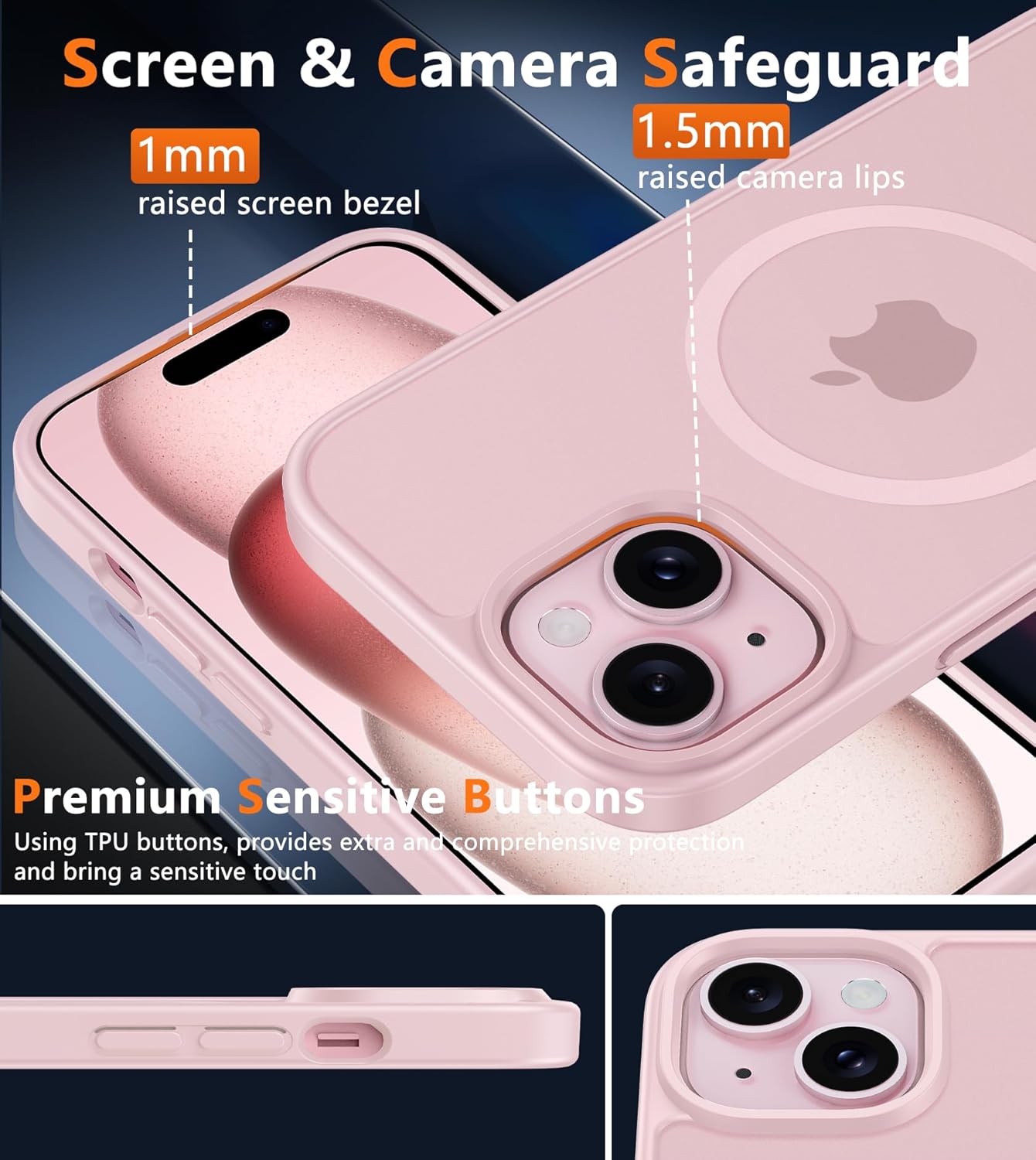 • Precise Process: Rigorously molded to the original iPhone 15/14/13, every port, lens, and side button opening has been measured and calibrated countless times, and each button is sensitive. It is thin enough to support wirelessly charge with the case on
