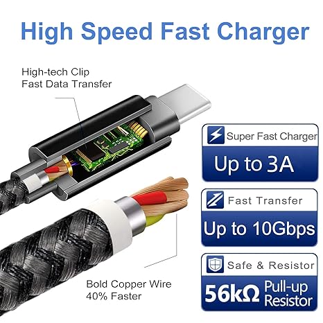 2. Data Transfer Speeds: Type-C USB cables support high-speed data transfer rates up to USB 3.2 standard. This allows for faster file transfers between devices, making it convenient for activities like syncing data, transferring large files, or streaming media.